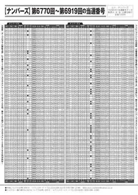 【ナンバーズ】第6770回~第6919回の当選番号データ |